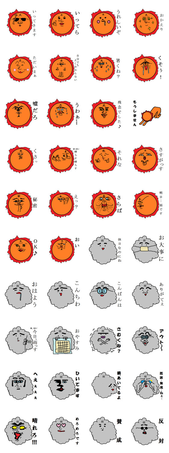 太陽と雨雲の本音が詰まったスタンプです。日常に華を添えるスタンプであってほしいです。