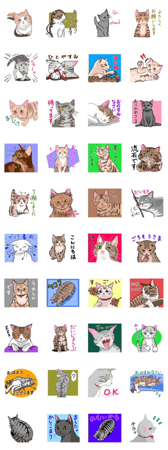いろいろな猫にやわらかな言葉を添えたスタンプです。