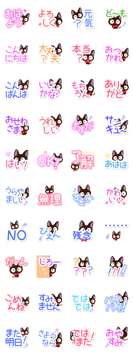 『やさしいクロネコ』スタンプから『選びやすい大きい文字』編になります。印象的な文字にしているので目立ちます。黒猫好きな方にぜひ。【かたこ】