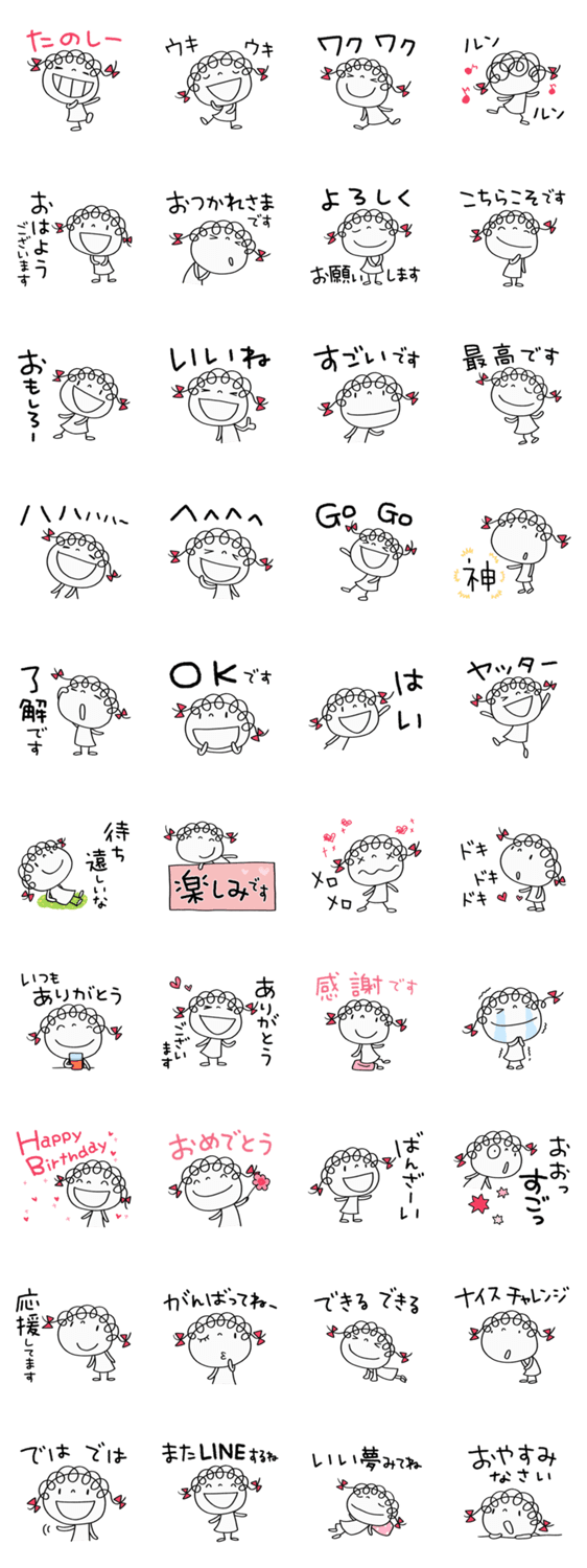 くるリボン。今回はワクワク編。「ウキウキ」「ルンルン」から「たのしー」まで。ワクワクする言葉がいっぱい。楽しい気分を、くるリボンと届けよう♪
