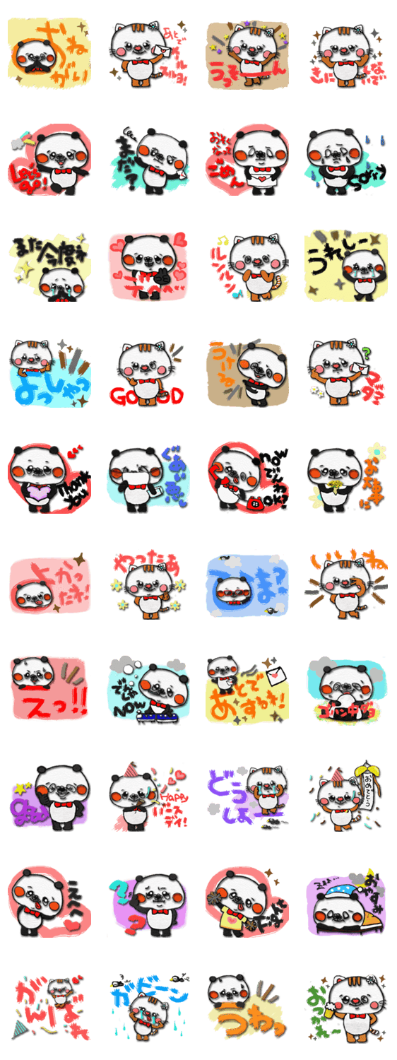 花キャットちゃんと花パンダちゃんによる日常生活に使えるスタンプです。