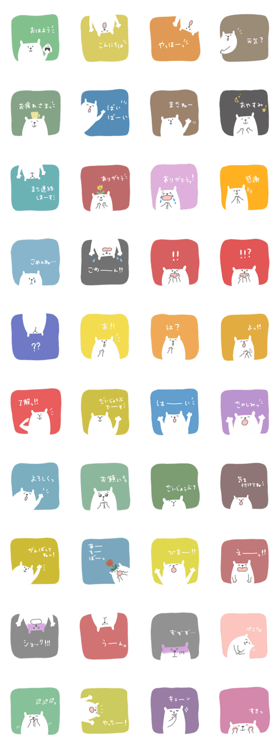 ほっこりゆる〜い しろくまのイラストの、毎日使える言葉のスタンプです。