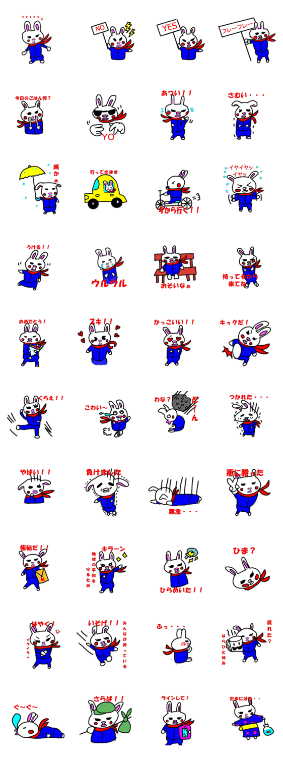 勇者にあこがれた,弱いけど頼れる!?うさぎスタンプ,きもかわいい,そんなスタンプです。