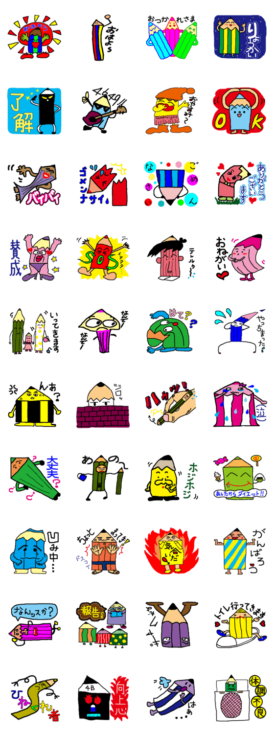 鉛筆を題材に多種多様な絵が満載ですタッチの違うスタンプをお楽しみ下さい