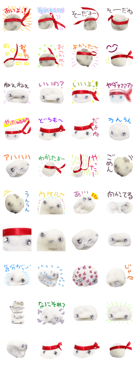 おしるこ村のおもちたちのスタンプ、第10弾!リアルなおもちたちのスタンプです。