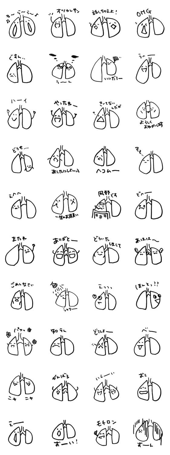 肺がモチーフの表情豊かな、いなのちゃんのお友達。感情表現に最適なスタンプです。