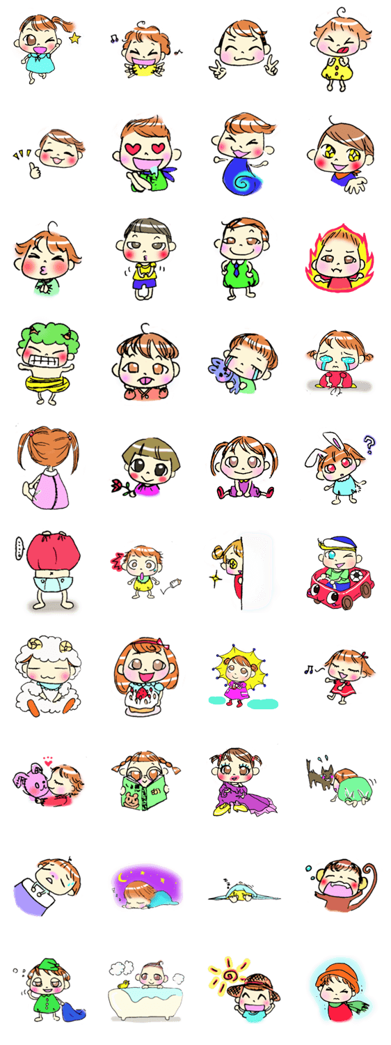 可愛いこども達のスタンプです。素直な気持ちを伝えるお手伝いが出来たらうれしいです♪