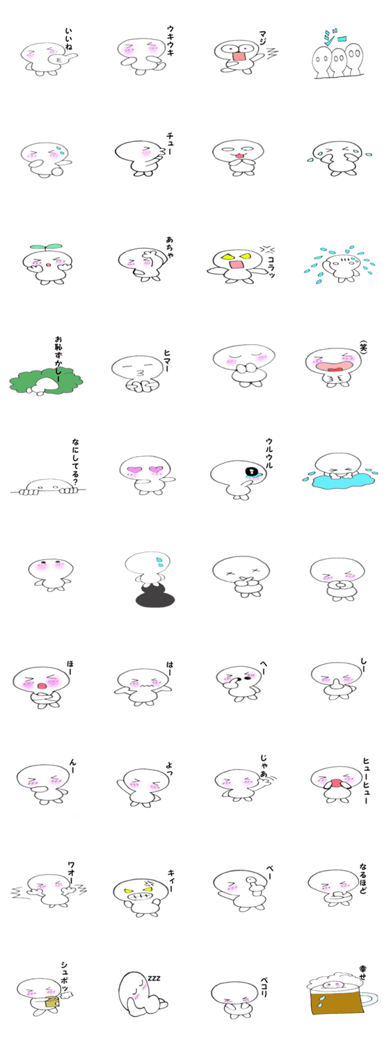 白くてゆるい、お餅のモッチー毎日使えるシンプルなスタンプです。