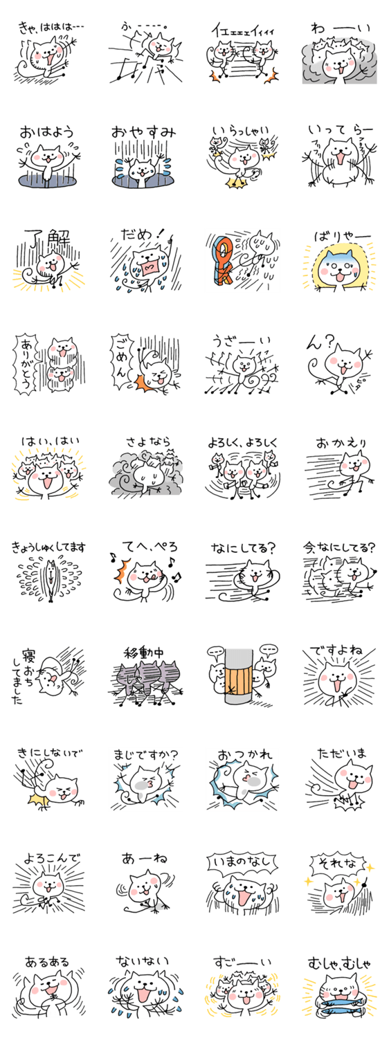 らくがきねこ、略して「らくねこ」です。テンションが高めの使えるスタンプです。