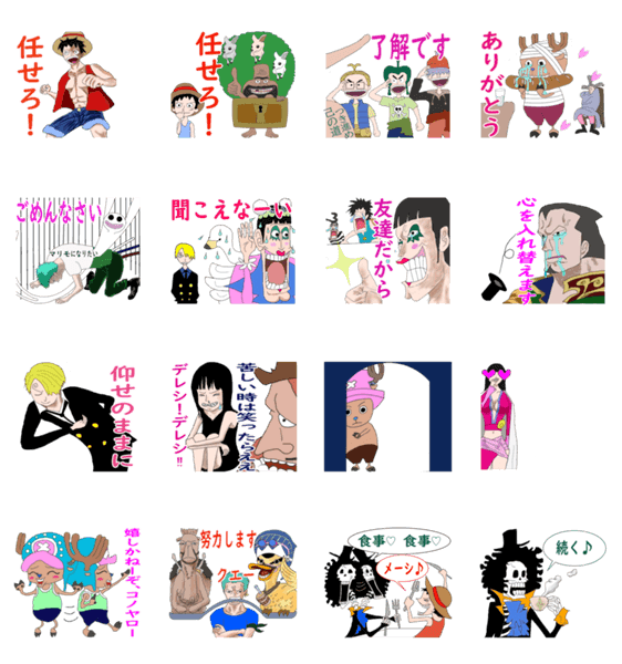 大好きなONE PIECEスタンプが作れる事に感謝。感動場面を想い起こさせ、その感動をお借りして感情のこもった返信が出来るスタンプを志し作ってみました。よろしくです。