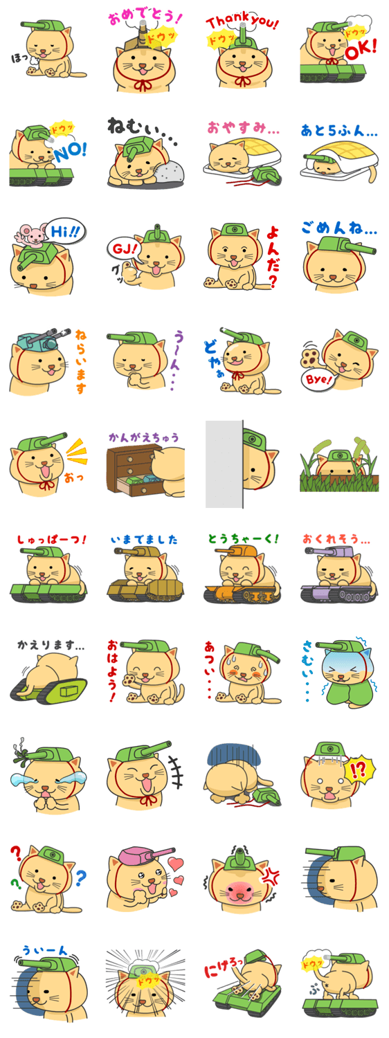 戦車に扮したネコのキャラクターをスタンプにしました!