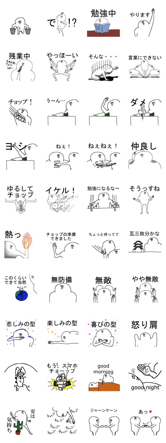 チョップ。チョップ。チョップ。たまになんか。意味もなく相手に送って困らせるためのスタンプです。