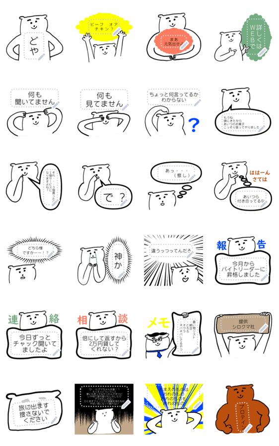 しろくま君のシュールでゆるいメッセージスタンプです 現在この商品は一部のスマートフォン版LINE 10.3.0以上のトークルームでのみ使用できます。動作環境の最新情報はヘルプをご確認ください。