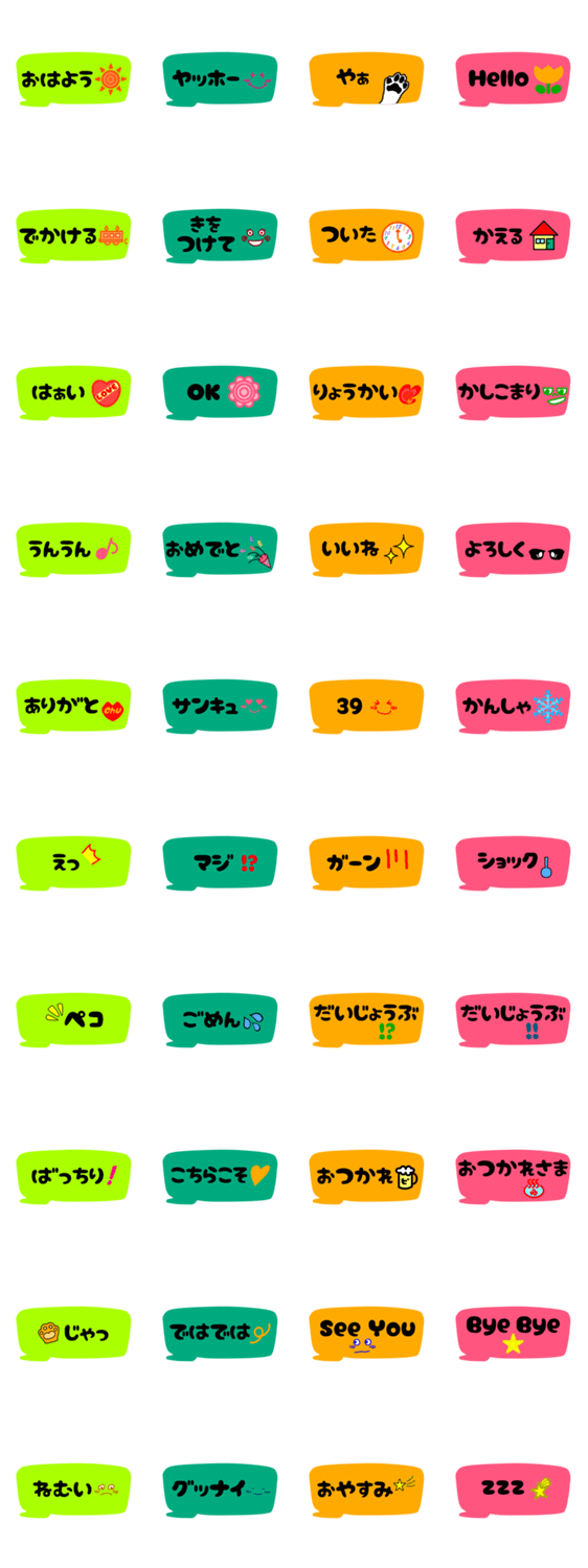 吹き出し19カラー『省スペース』。カラーの吹き出しスタンプです。
