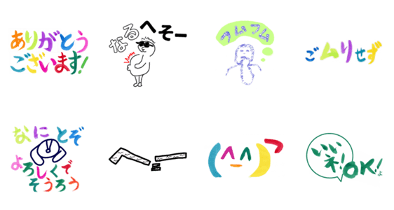 年齢の違うまま友に丁寧、ギャグいり、尊敬の念をこめて送る言葉。筆文字、カラフルな色で手書きの温かみを出しました。
