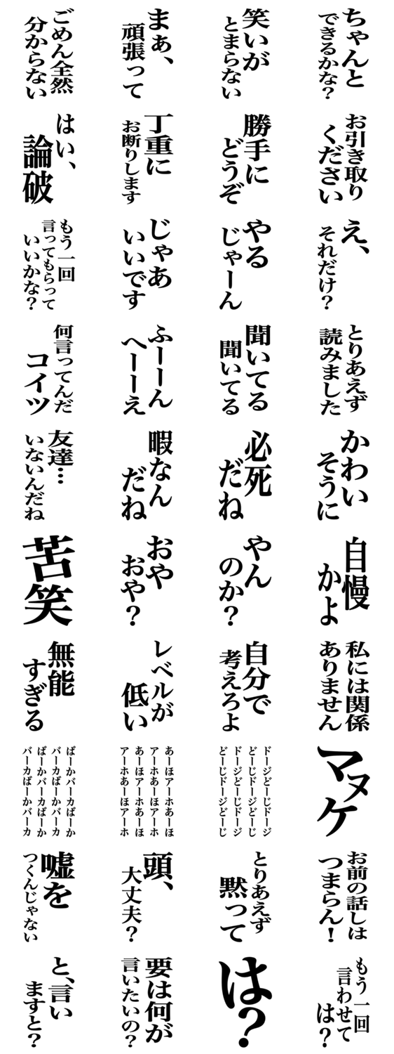 基本の煽り返信専用スタンプ! 面白い/ネタ煽り/ちょっと毒舌/毎日デカ文字/究極の煽り ※このスタンプはトークルームで大きく表示されるBIGスタンプです。