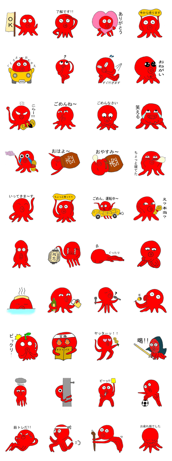毎日全力!!喜怒哀楽な生活を送るタコの日常的なスタンプです。