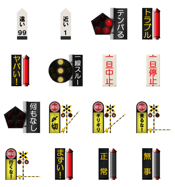 日本の電車や地下鉄にまつわる各種設備を描きました。踏み切りもあります。
