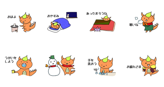 寒い冬も元気に過ごす龍ちゃんのスタンプ