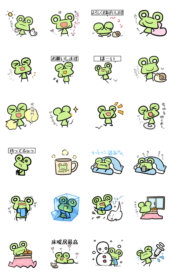 冬の可愛いKAERUスタンプ! 日常で使えるつぶやきスタンプなので、めっちゃ使いやすいです☆