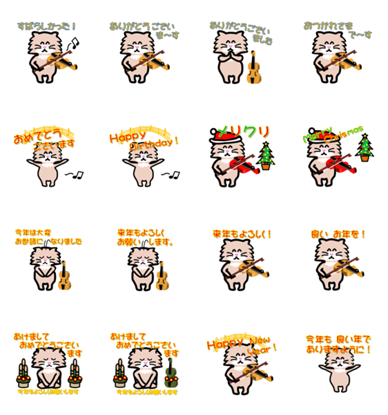 バイオリンねこりん の あいさつ -LINEスタンプマニア