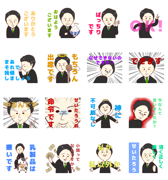 みんなの憧れ。みんなの神様。せいたろうさんがついにLINEスタンプになりました。押すたびに広がる神々しさを体感しながら我らの神・せいたろうを称えましょう。