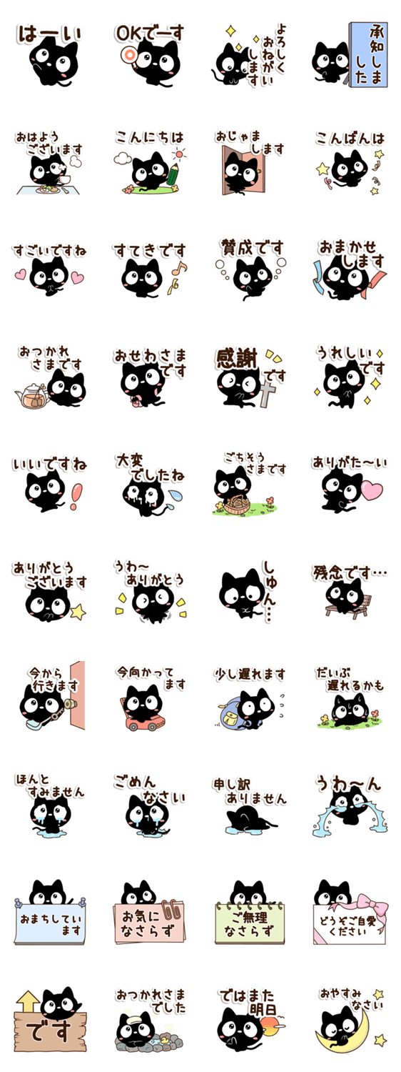 『クロネコすたんぷ』から、【やさしい返事】編になります。かわいい黒猫が、丁寧でやさしい言葉を返します。ねこ好きな方にぜひ。【かたこ】