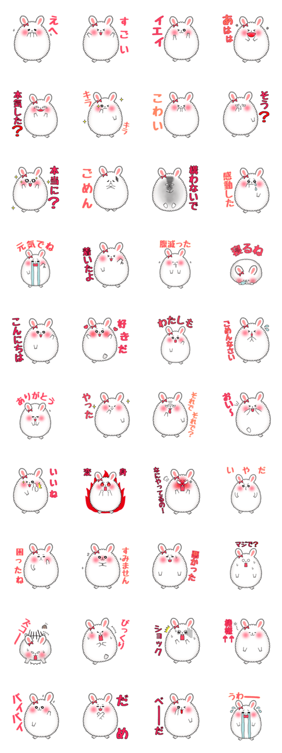 太りすぎたうさぎのまるちゃん。日本語バージョンが登場です。普段使いに便利なコメントがたくさん。友だちとの会話が盛り上がること間違いなしです。