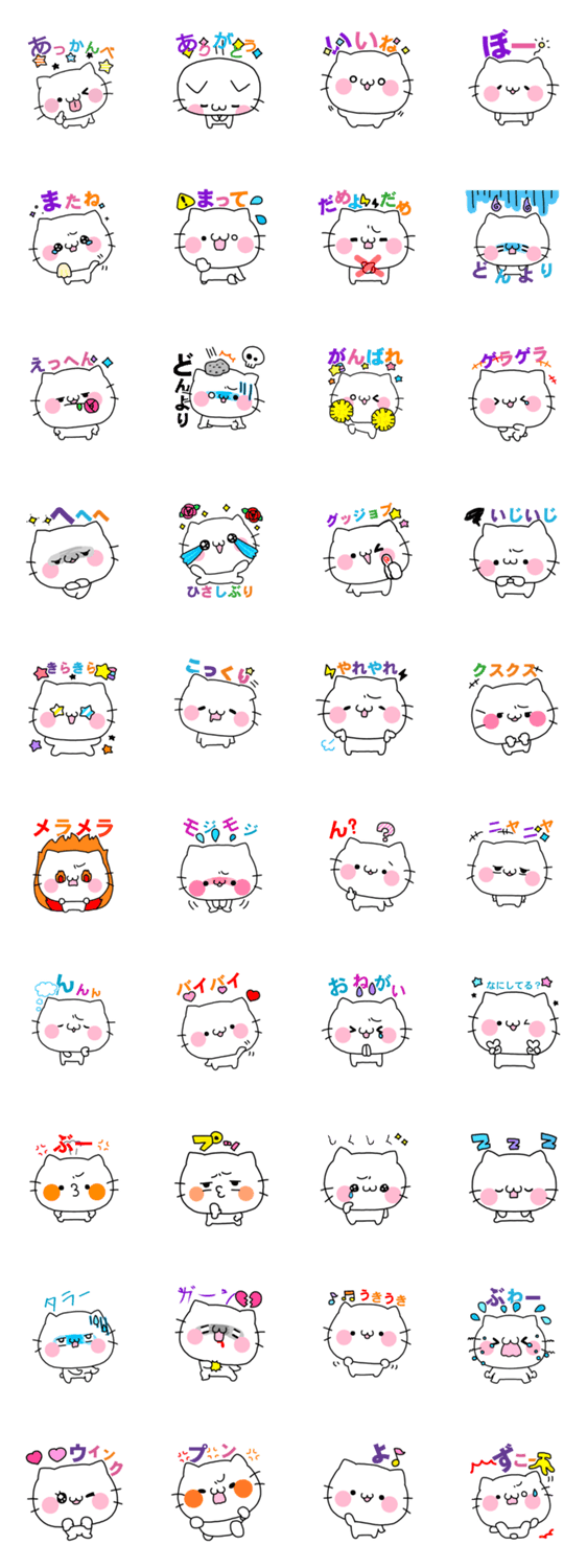 白い子猫モフモフ。日本語バージョンが登場です。かわいいだけじゃなく、普段使いに便利なコメントがたくさん。友だちとの会話が盛り上がること間違いなしです。