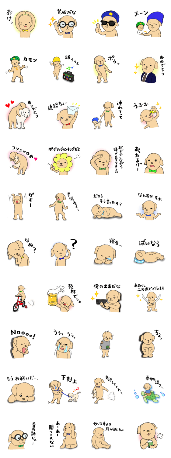 トイプーちゃんの表情豊かなおもしろ挨拶スタンプ、その2です。チワワ、ミニチュアダックス、ポメラニアン、パピヨンなどすべての犬好き達へ。
