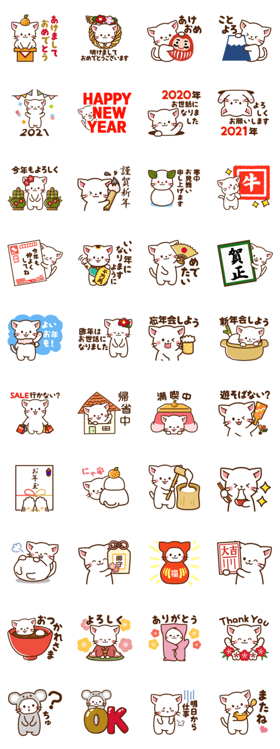 しろねこ♡お正月(年末年始の言葉) -LINEスタンプマニア