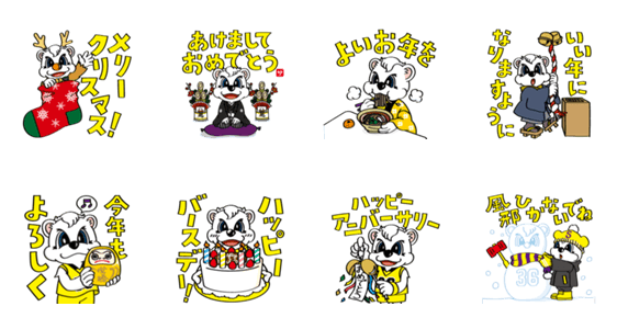 サンロッカーズ渋谷 マスコット サンディーのXmas、お正月の挨拶に使えるスタンプです!