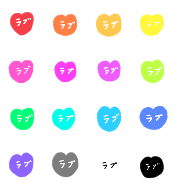 それぞれのハートにラブと書いてあるシンプルなスタンプです。お好きな色をどうぞ