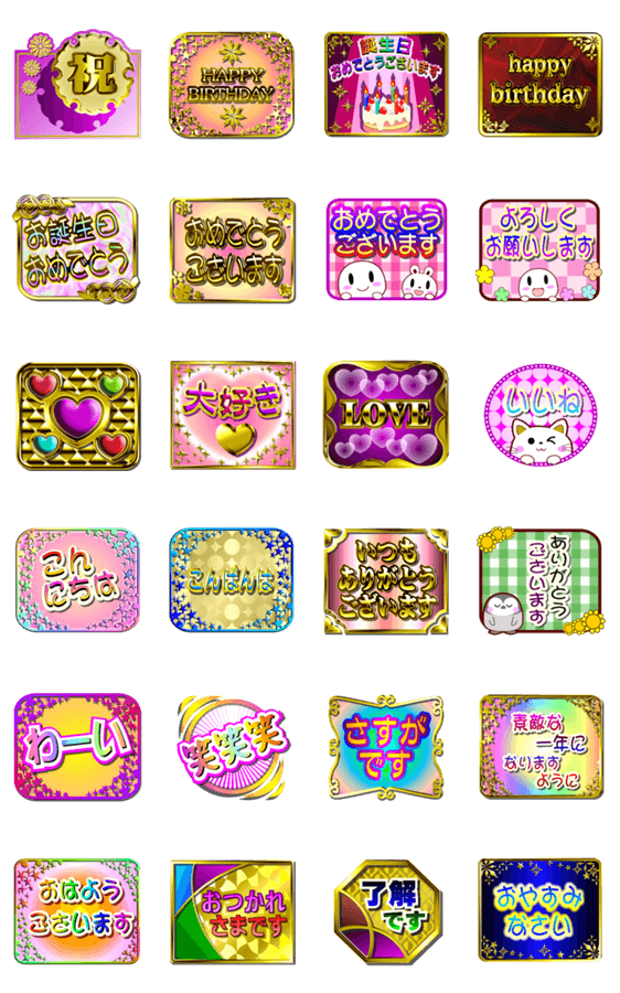 誕生日などのお祝いを中心に感謝や思いを伝えるスタンプに万華鏡などのキラキラした華麗な背景を添えて送れます、#初売りスタンプ
