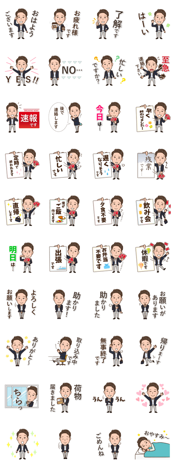 男性が使いやすいデイリースタンプです。奥さんに、お子さんに、彼女にLINEをする時、スタンプ一つで用件を伝えらるので、忙しい男性にもってこいです。プレゼントにも是非