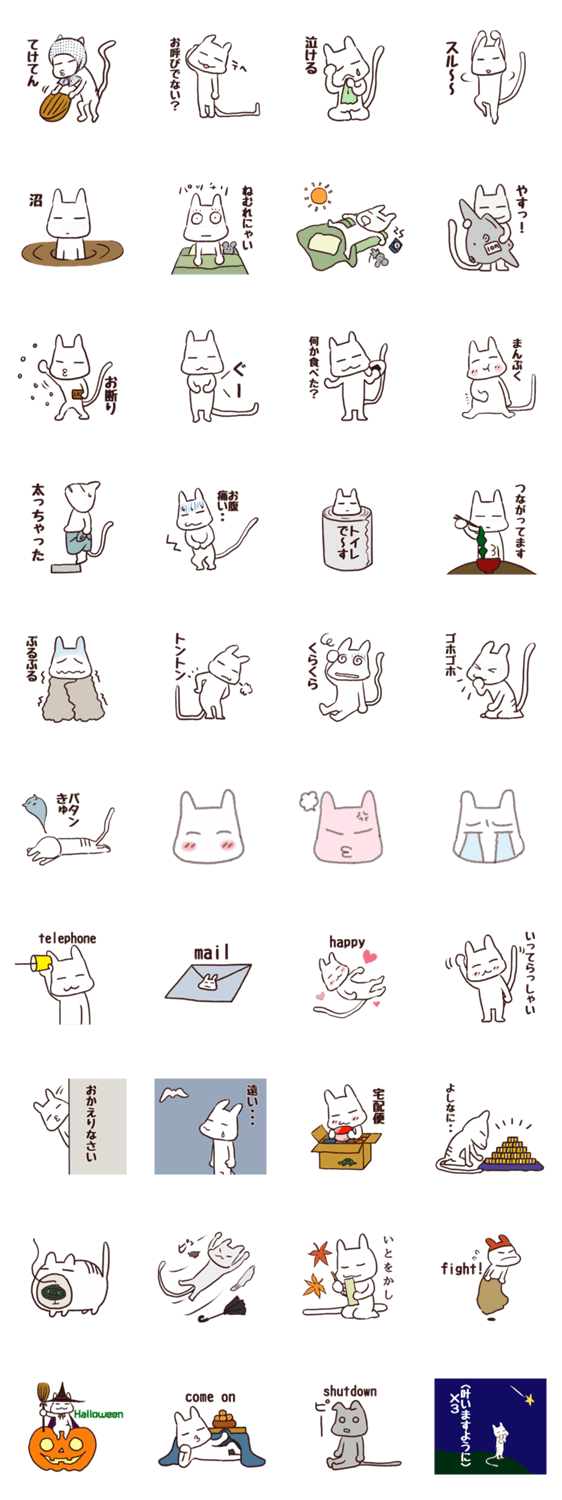 ちょっとしもぶくれなねこのスタンプです。体調など日常生活表現が多めです。
