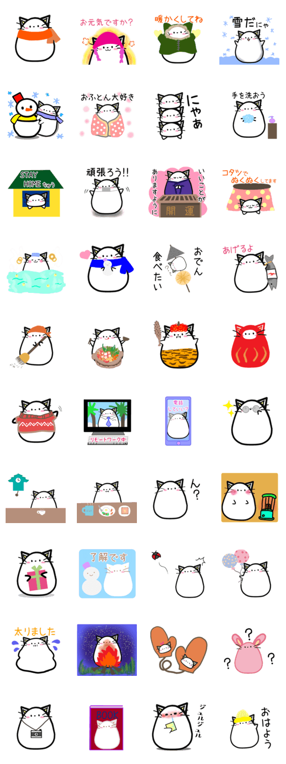 たまごネコスタンプの冬バージョンです。