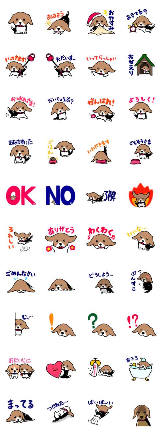 マイペースなビーグル犬の日常で使えるスタンプ。