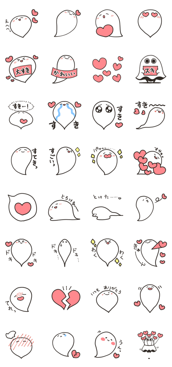 すきとハートがいっぱいの気持ちを伝えるスタンプです たまにおばけもどきがいます