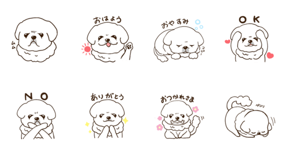 真っ白なペキニーズ、ゆきちゃんのスタンプです。
