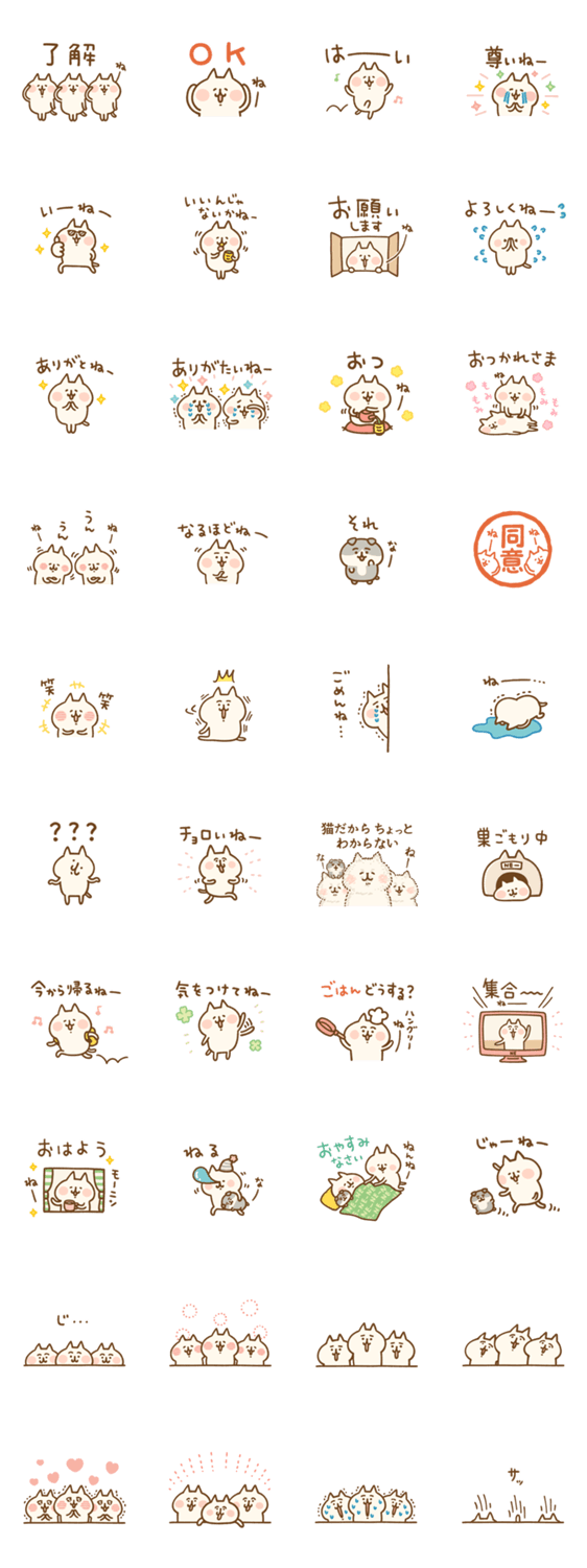 語尾が何かと「ねー」のねーねーねこスタンプ第三段です。なーなーねこもいます。