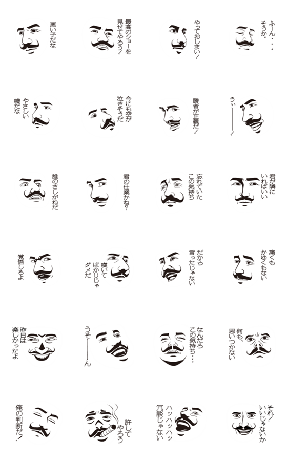 ザ・フェイススタンプ アニメーション版2 フェイススタンプを少し変更してアニメーションスタンプにしました。お髭の男性がちょっと渋めに、クールに、時にはおちゃめに。