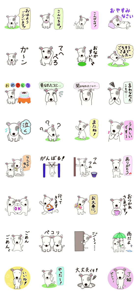 かわいいブルテリアで日常会話に使えるスタンプ