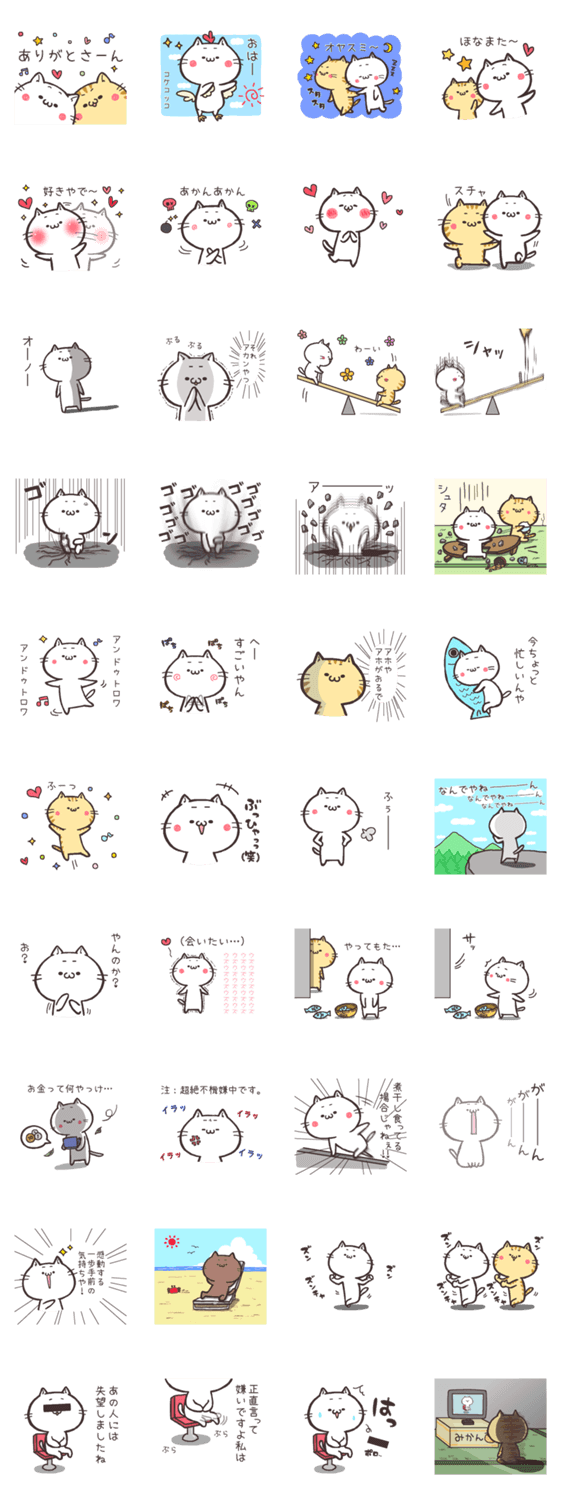【ハルコのスタンプ第8弾】関西弁ねこシリーズ第3弾☆白猫ぬこ太。ときどきトラキチ。可愛くもシュールなにゃんこ達が更なる活躍を見せます!ネタ系が好きな方にオススメ♡