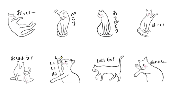 シンプルでお洒落な白ネコのスタンプ。 目が可愛い。
