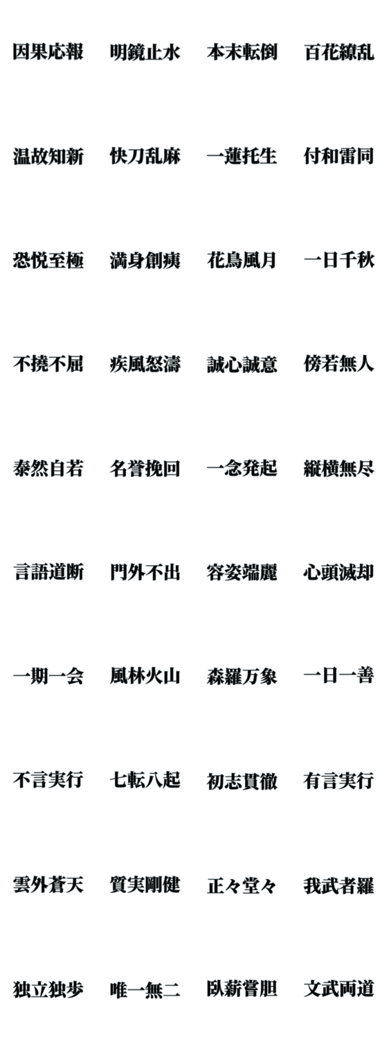 国内外で好まれている四字熟語を集めました。 #はじめてのLINEスタンプ にオススメ