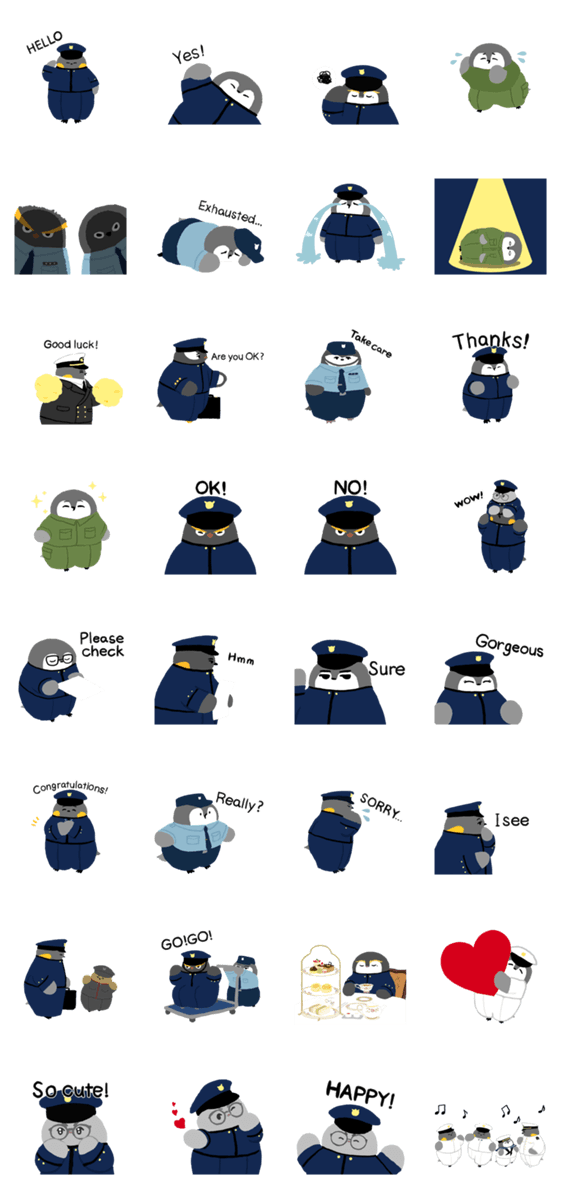 防衛大学校で生活するペンギン達の日常スタンプ英語ver.です。高工校、教育隊、幹部候補生ペンギンも登場しています。海外のお友達とのコミュニケーションにおすすめです。