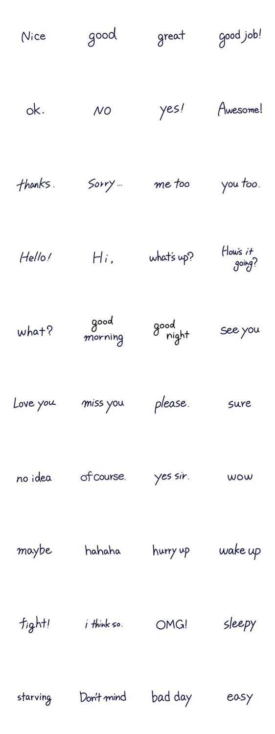 日常でよく使う英語を手書き文字で作成しました。 気軽に使ってください!