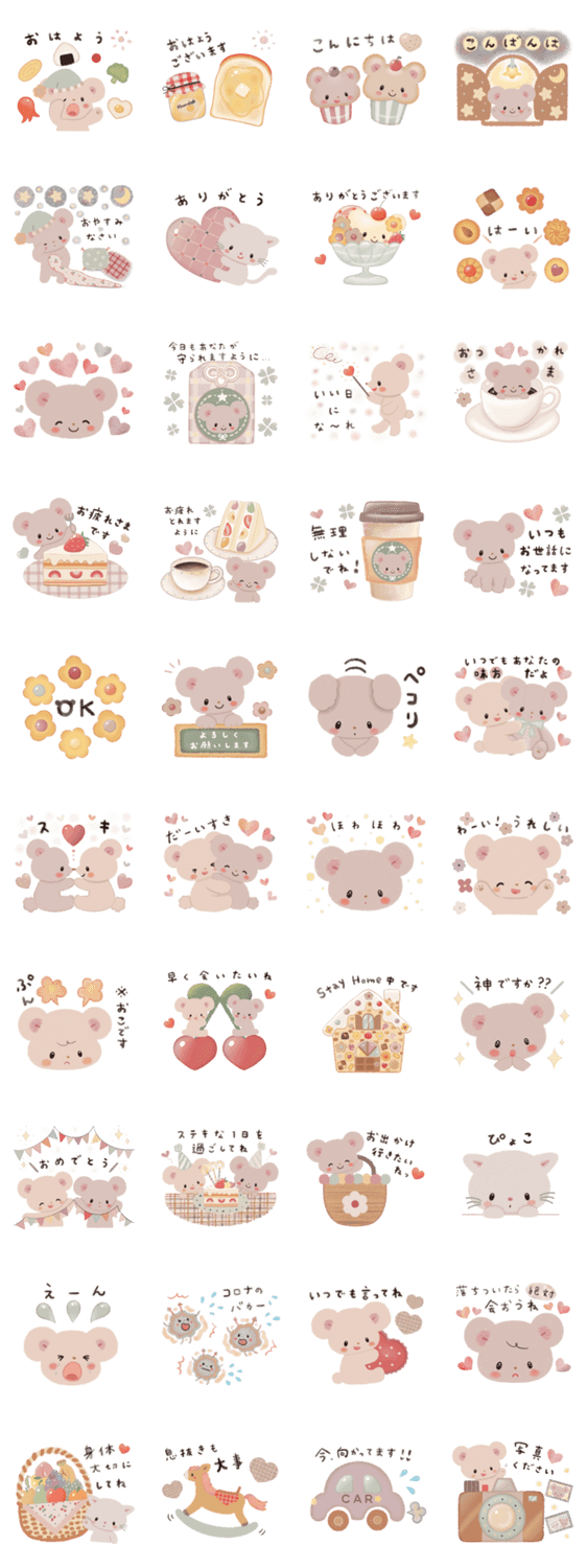 日常で使いやすいスタンプのセットです。相手を思いやる優しい言葉でほっこりしてもらえたら嬉しいです。 くま/くすみカラー/淡色/絵本/カフェ