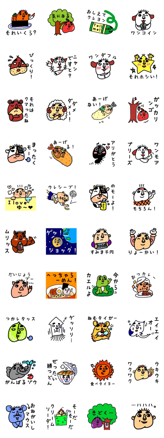 たのしいおえかきの第二弾。子どもの落書き風でキモカワなダジャレスタンプです。